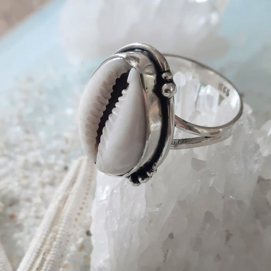 COWRIE SHELL- 925 BOHO BEACH SHELL RING