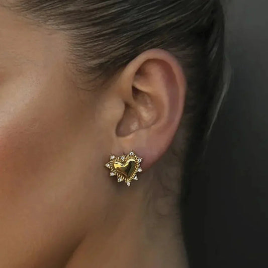 GOLDEN HEARTS - CUBIC ZIRCONIA 18K GOLD WATERPROOF STUD EARRINGS