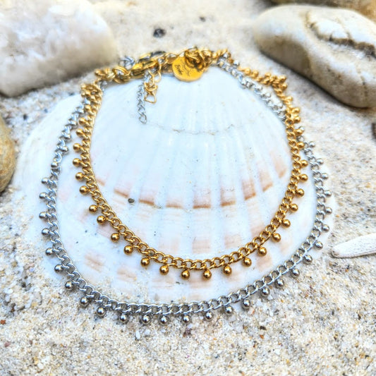 BALLES - WATERPROOF SILVER OR GOLD BEACH BOHO ANKLETS
