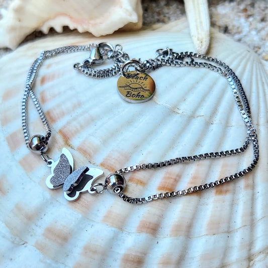 TRANSFORMATION DOUBLE CHAIN BUTTERFLY GOLD OR SILVER WATERPROOF ANKLET