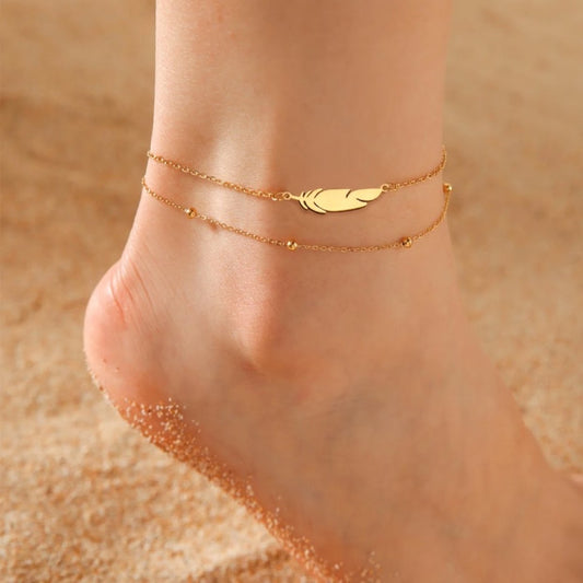 DOUBLE LEAF- SATURN CHAIN DOUBLE GOLD OR SILVER WATERPROOF ANKLET