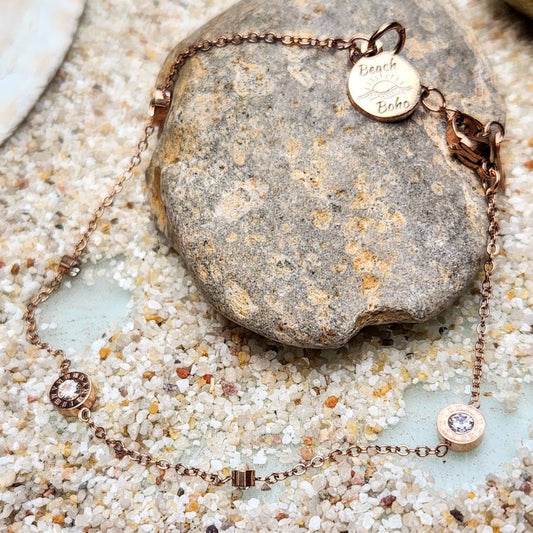 ROSES OF GOLD - CZ ROSE GOLD ROMAN NUMERALS WATERPROOF ANKLET
