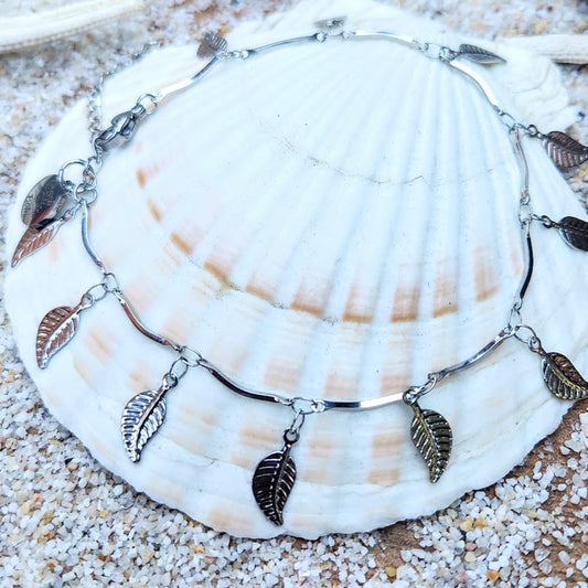 PRETTY LEAVES - SILVER OR GOLD - WATERPROOF BEACH ANKLET
