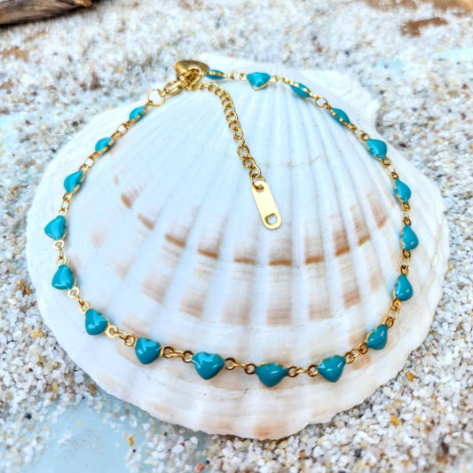 TURQUOISE HEARTS - 18K GOLD RAINBOW WATERPROOF ANKLET