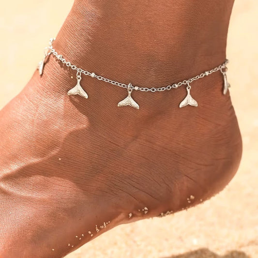 WHALE TAILS - SILVER OR GOLD - WATERPROOF BEACH BOHO ANKLET
