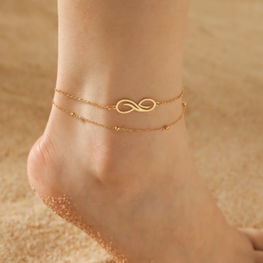 DOUBLE INFINITY - SATURN CHAIN DOUBLE GOLD OR SILVER WATERPROOF ANKLET