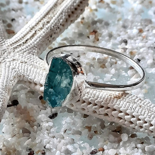 SEA BLUE - APATITE HANDMADE / CRYSTAL SILVER HOOK EARRINGS