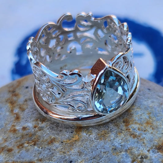 BLUE WATERS - AQUAMARINE 925 STERLING SILVER RING