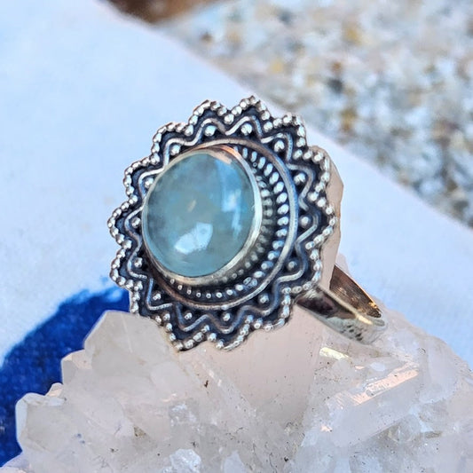 MANDALA WATERS - AQUAMARINE 925 FLOWER RING