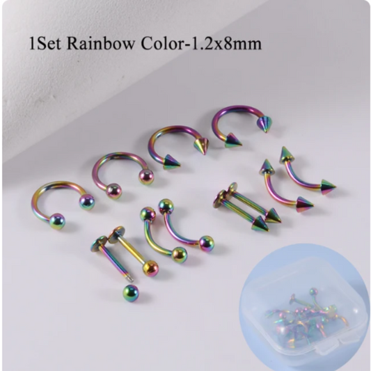 WATERPROOF 18K GOLD / BLACK / RAINBOW OR SILVER PIERCING 12 PIECE SET