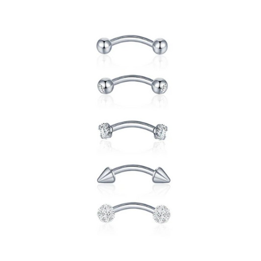 WATERPROOF 18K GOLD / BLACK OR SILVER PIERCING 5 PIECE SET