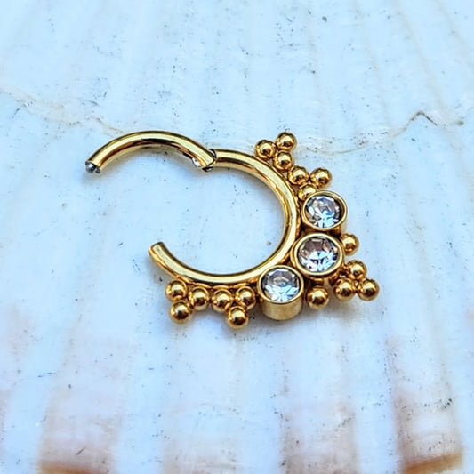 WATERPROOF CUBIC ZIRCONIA / OPAL HOOP GOLD PIERCING