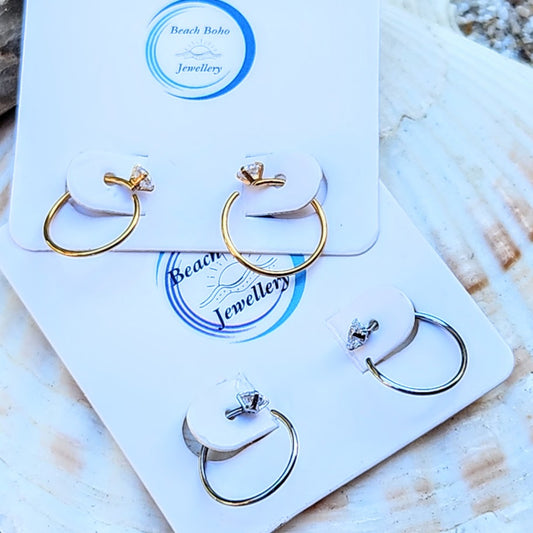 CUBIC ZIRCONIA HOOP ROSE GOLD OR SILVER WATERPROOF PIERCING