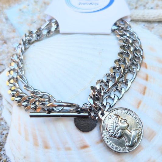 MONNAIE - GOLD & SILVER COIN DOUBLE CHAIN LINK WATERPROOF BRACELET