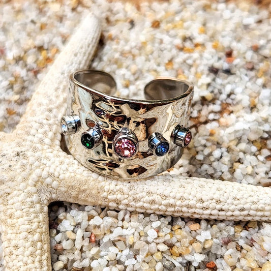 LITTLE WAVES - ADJUSTABLE BLACK / RAINBOW / CRYSTAL WATERPROOF GOLD RINGS
