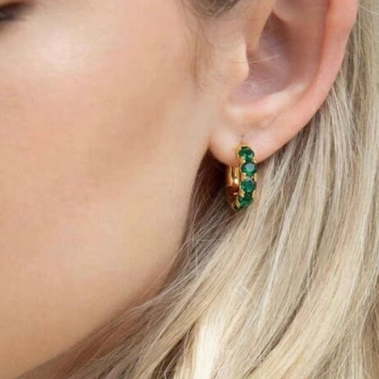 EMERALD HUGGIES - CUBIC ZIRCONIA HUGGIE HOOPS