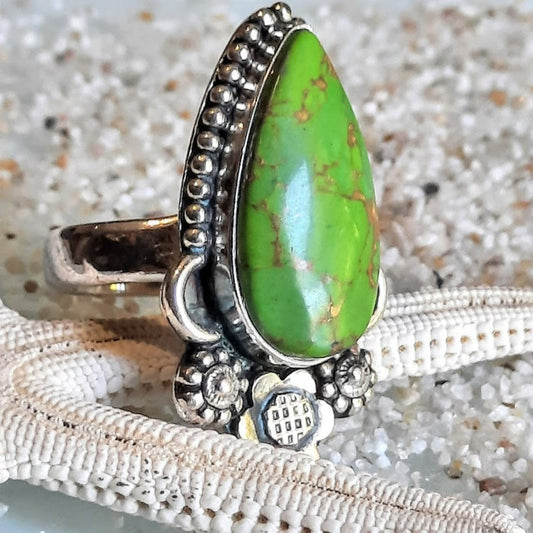 COPPER GREEN - TURQUOISE 925 FLOWER RING