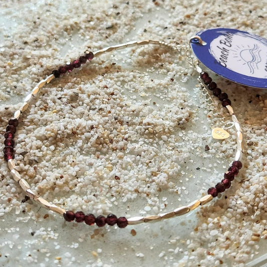 GARNET RED - HILLTRIBE SILVER ANKLET
