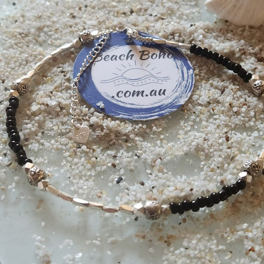 BLACK STONE - HILLTRIBE 'OM' ANKLET