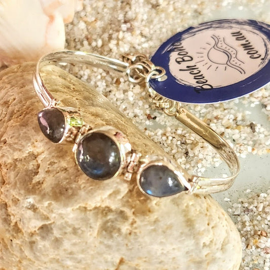 BLUES & GREENS - LABRADORITE OR PERIDOT GEMSTONE STERLING SILVER 925 BRACELET