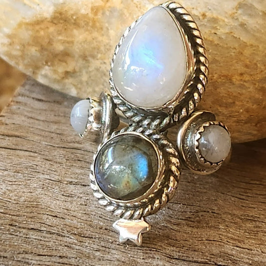 ENHANCEMENT - MOONSTONE & LABRADORITE 925 RING