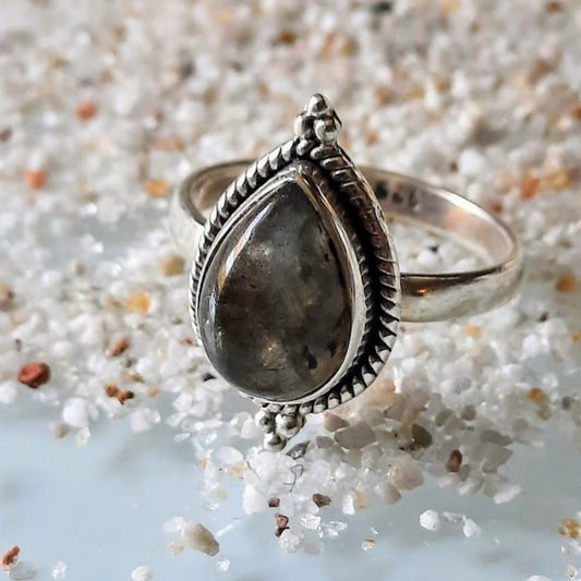 NEW BELIEFS - LABRADORITE TEARDROP 925 RING