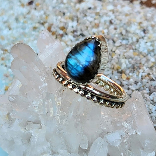 BLUE FLOWERS - LABRADORITE 925 BOHO RING