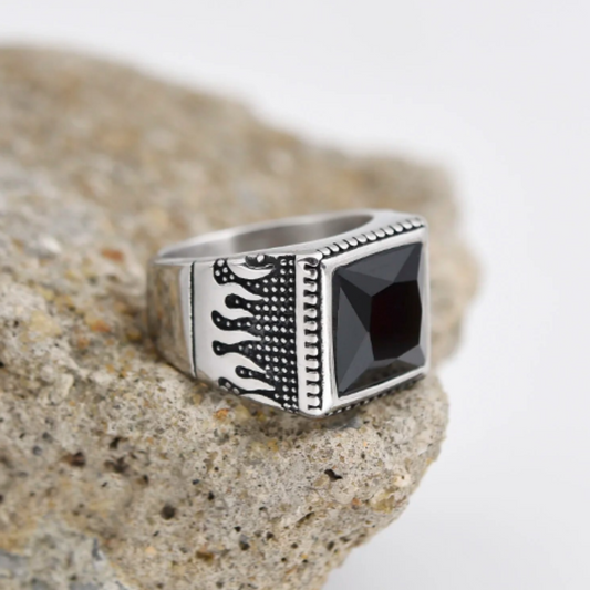 ONYX WAVE - WATERPROOF MEN'S ONYX CRYSTAL SILVER RING