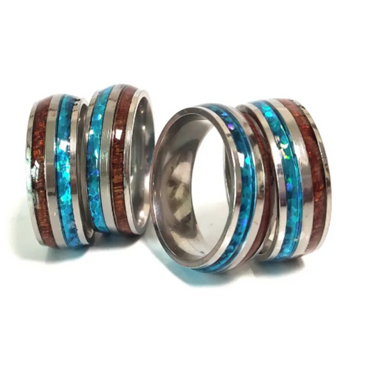 ROSE GOLD - PAUA SHELL & WOOD INLAY WATERPROOF MEN'S RING