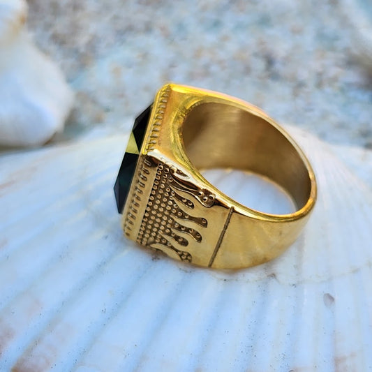 GREEN WAVE - WATERPROOF MEN'S EMERALD CRYSTAL 18K GOLD RING