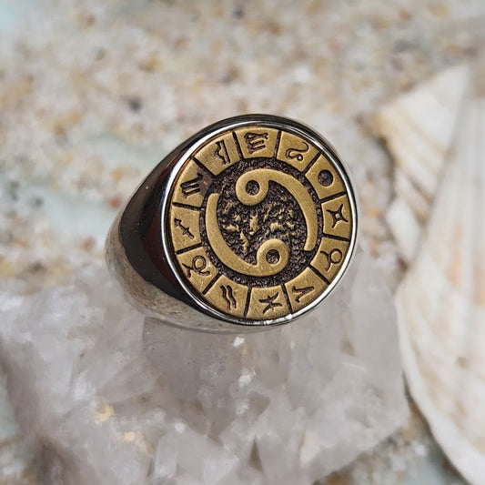 HOROSCOPE - WATERPROOF SILVER / GOLD OXIDISED RING