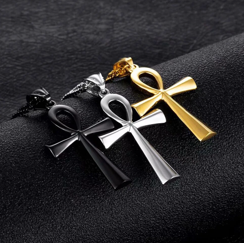 EGYPTIAN ANKH BLACK GOLD OR SILVER MEN'S NECKLACE