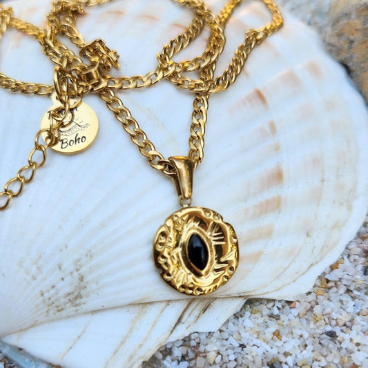 EYE OF BLACK - WATERPROOF 18K GOLD ONYX STONE PENDANT NECKLACE