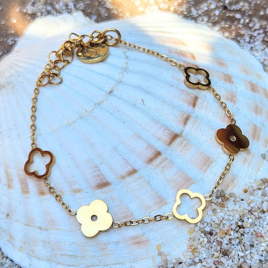 FOUR LEAF CLOVER - WATERPROOF 18K GOLD CLOVER PENDANT BRACELET & NECKLACE SET