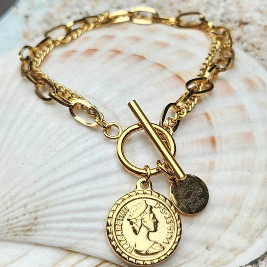 MONNAIE COIN BRACELET & NECKLACE SET - WATERPROOF 18K GOLD