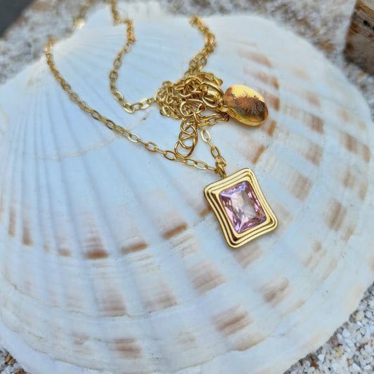 ROSE QUARTZ - WATERPROOF 18K GOLD PENDANT NECKLACE