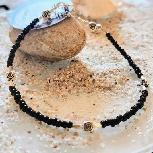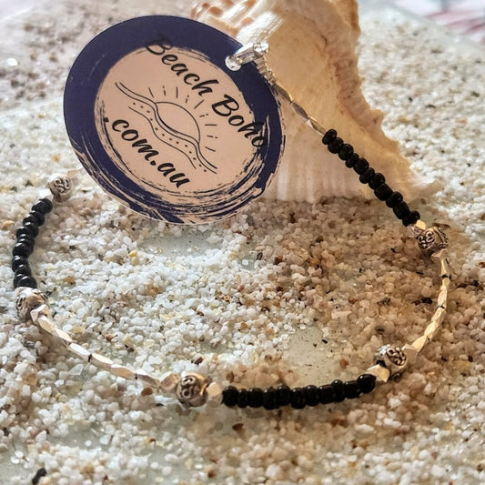 BLACK STONE - HILLTRIBE 'OM' ANKLET