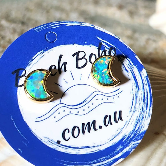 OPAL MOON - OPAL STUD GOLD PLATED EARRINGS
