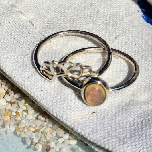 RAINBOW LOTUS - OPAL 925 SILVER RING SET