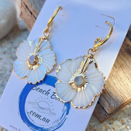 MOON FLOWERS - CARVED SHELL ELECTROPLATED HOOK EARRINGS