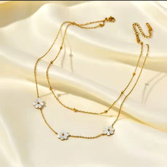 DAISY FLOWERS SHELL NECKLACE & STUD EARRINGS - WATERPROOF 18K GOLD