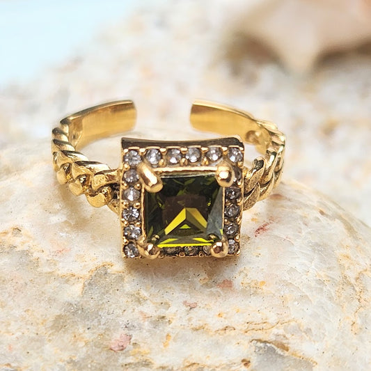 PERIDOT SPARKLES - ADJUSTABLE WATERPROOF GOLD RING