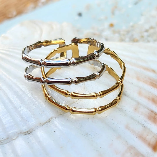 BAMBOO 18K RINGS OR SILVER - ADJUSTABLE WATERPROOF