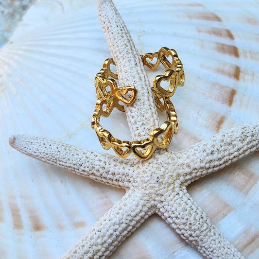 LAYERED HEARTS - WATERPROOF 18K & SILVER CUBIC ZIRCONIA GOLD RING