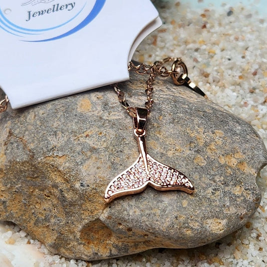 DOLPHIN TAIL CHARM - CUBIC ZIRCONIA ROSE GOLD WATERPROOF NECKLACE