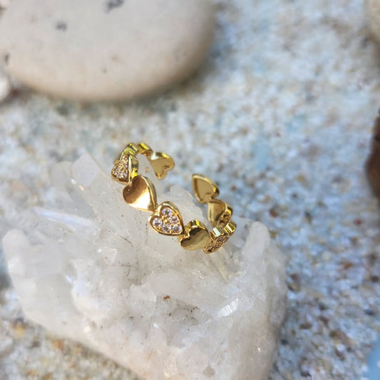 CRYSTAL HEARTS - CZ ADJUSTABLE 18K WATERPROOF RING