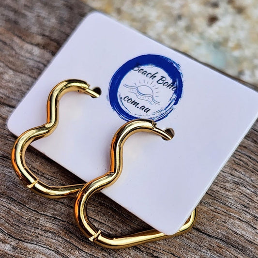 HEART TO HEART - GOLD WATERPROOF HUGGIE HOOP EARRINGS
