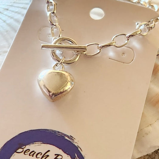 T-BAR LOCK 925 SILVER HEART NECKLACE