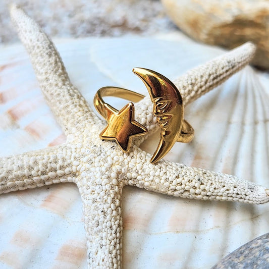 SEE THE MOON & THE STAR - ADJUSTABLE WATERPROOF 18K GOLD RING
