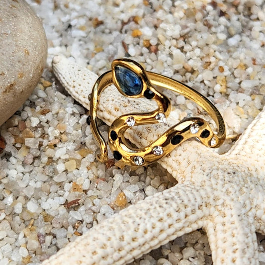 SAPPHIRE SNAKE - ADJUSTABLE CUBIC ZIRCONIA WATERPROOF 18K GOLD RING